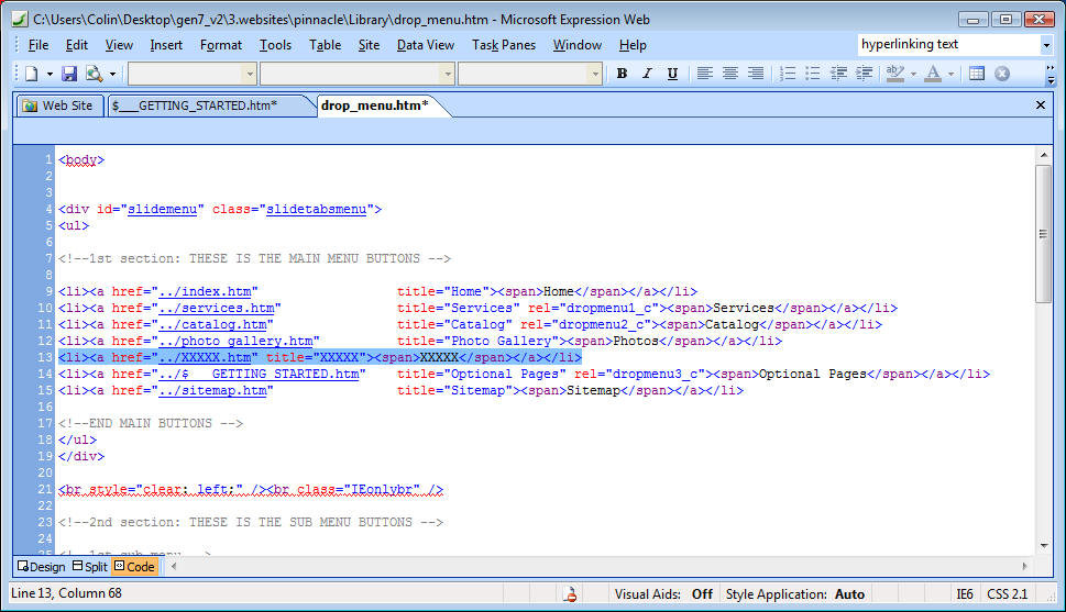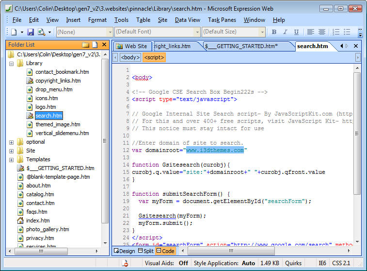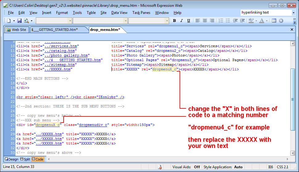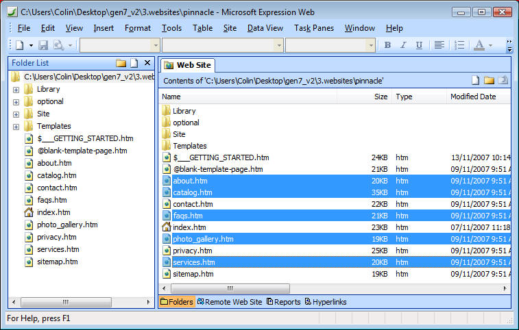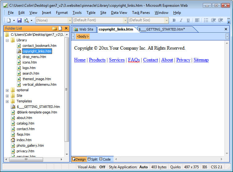 page to create your new pages. Keep the contact.htm, privacy.htm and