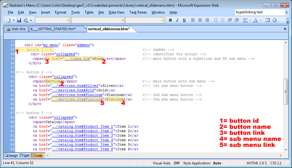 - change the hyperlink between the <buttonURL> and the </buttonURL>