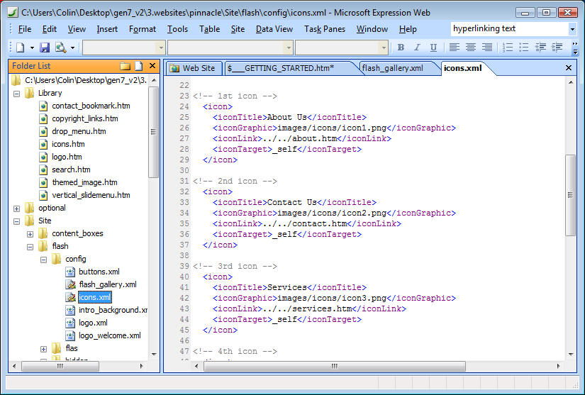 - change the black "hyperlink" text between the <iconLink> and </iconLink>